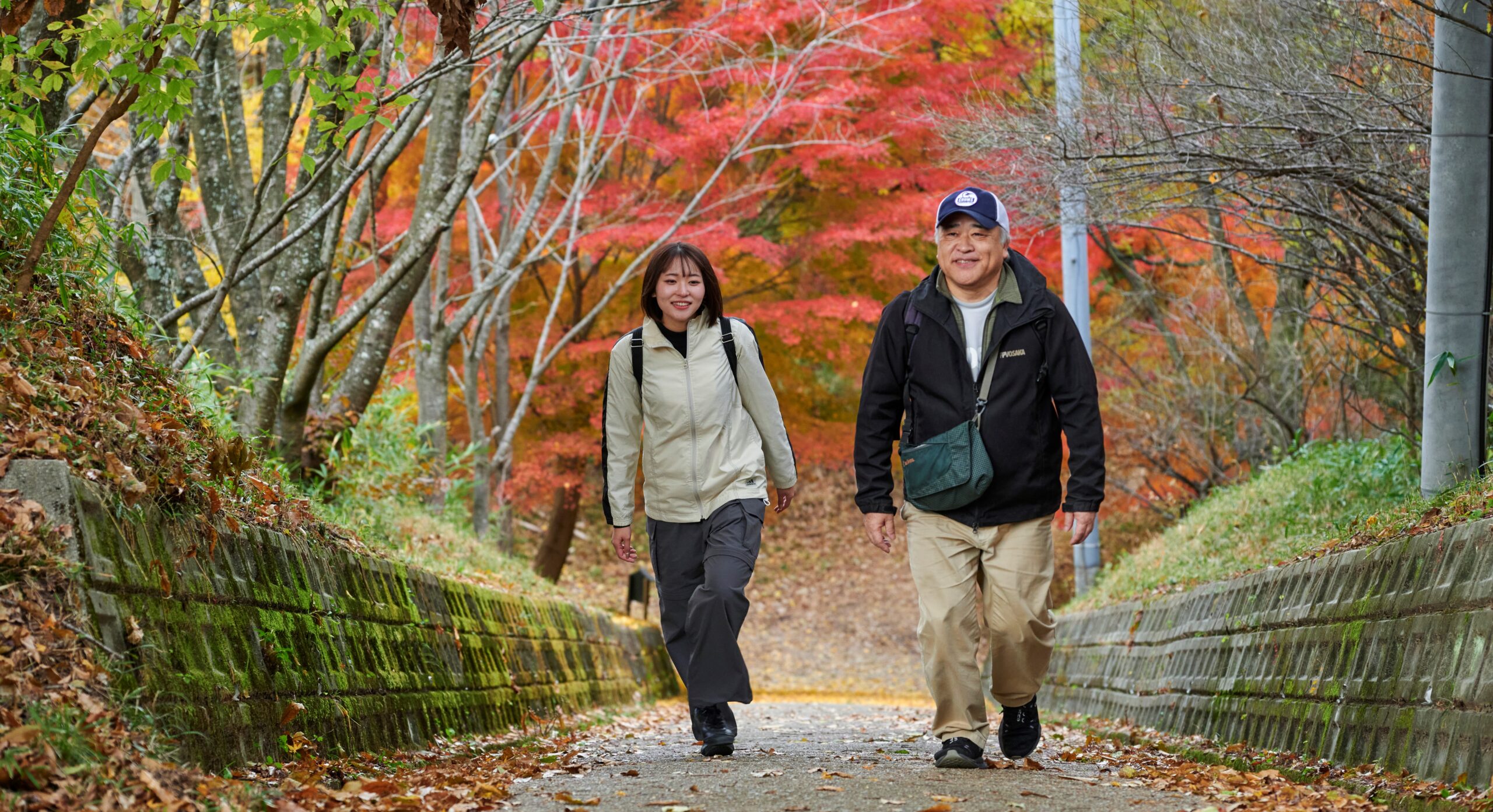 このプランでは夕焼けに染まるマジックアワーを山頂で味わっていただきたく、マジックアワーの時間帯を狙って出発します。休憩場所が多いコースなので日頃体を動かしていない人にもおススメ。山頂まで到着すると、「おソトアソび」の達人より、ホットドリンクとおやつのご褒美があり、絶景カフェタイムのスタート!また、ドローン撮影をおこなうので、ドローンに向かって大きく手を振ったり、参加者みんなでポージングしてみよう。「おソトアソび」の達人に歩き方を教わりながら、絶景を目指しましょう!