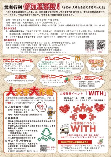 ・申込:3月1日までに電話(大東市 観光振興課 tel:072-870-0442)か下記申込フォームにてお申し込みください