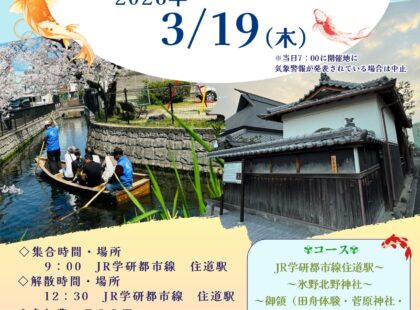 大東市の御領散策 色鯉泳ぐ井路で田船体験と旧庄屋屋…
